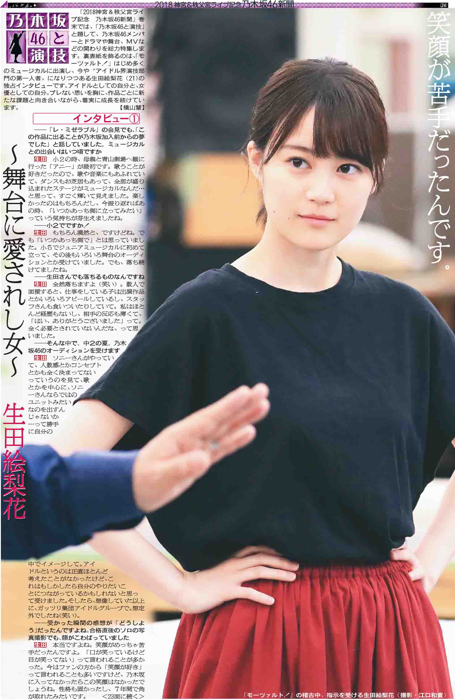 巻末特集「乃木坂46と演技」のトップを飾るのは生田絵梨花さん。