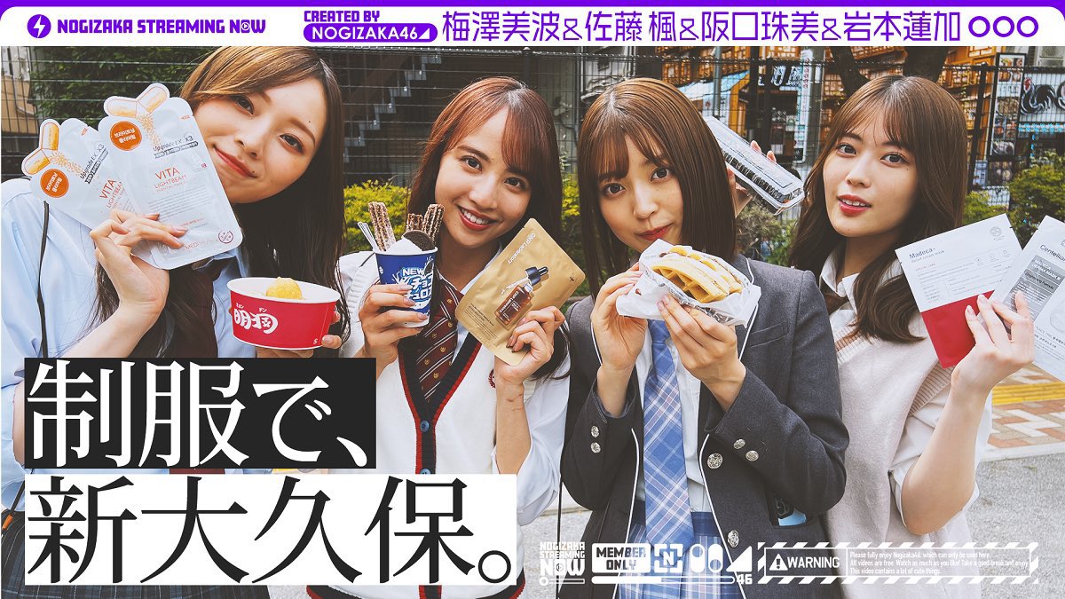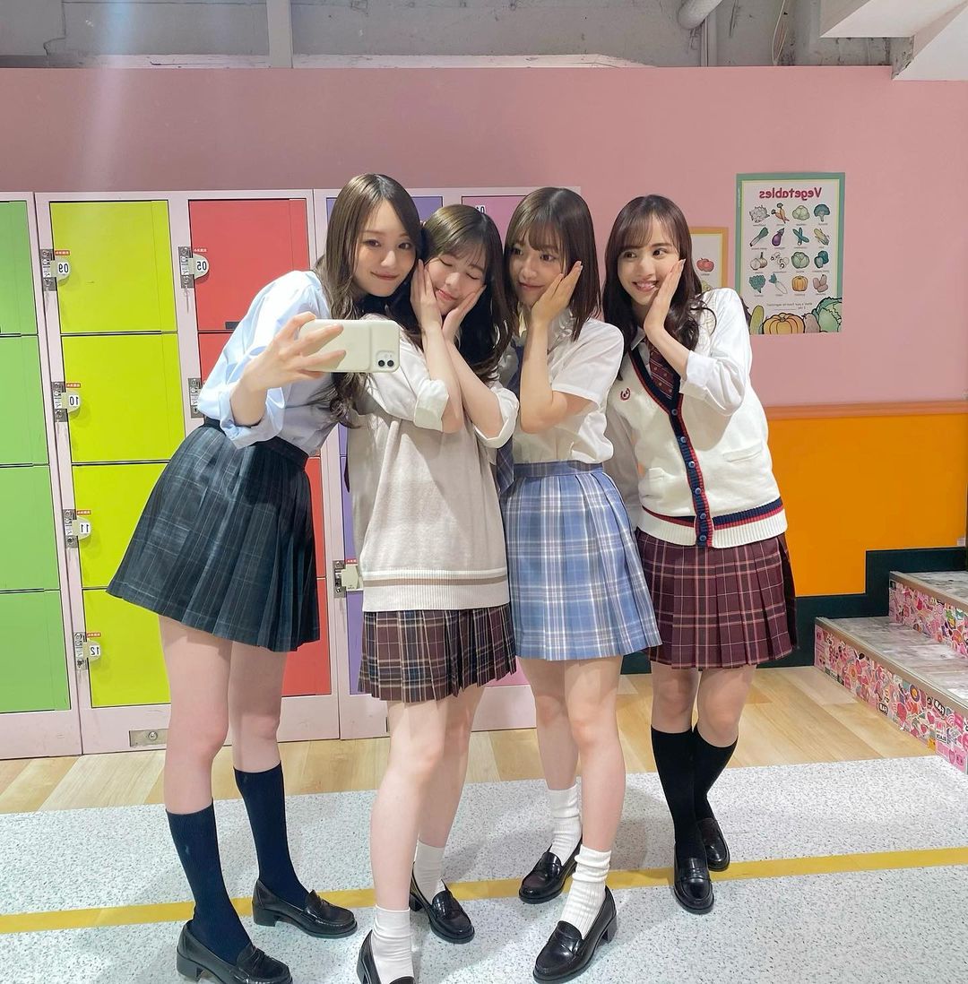 岩本蓮加、梅澤美波、阪口珠美、佐藤楓の4人が制服を着て新大久保でデート♪