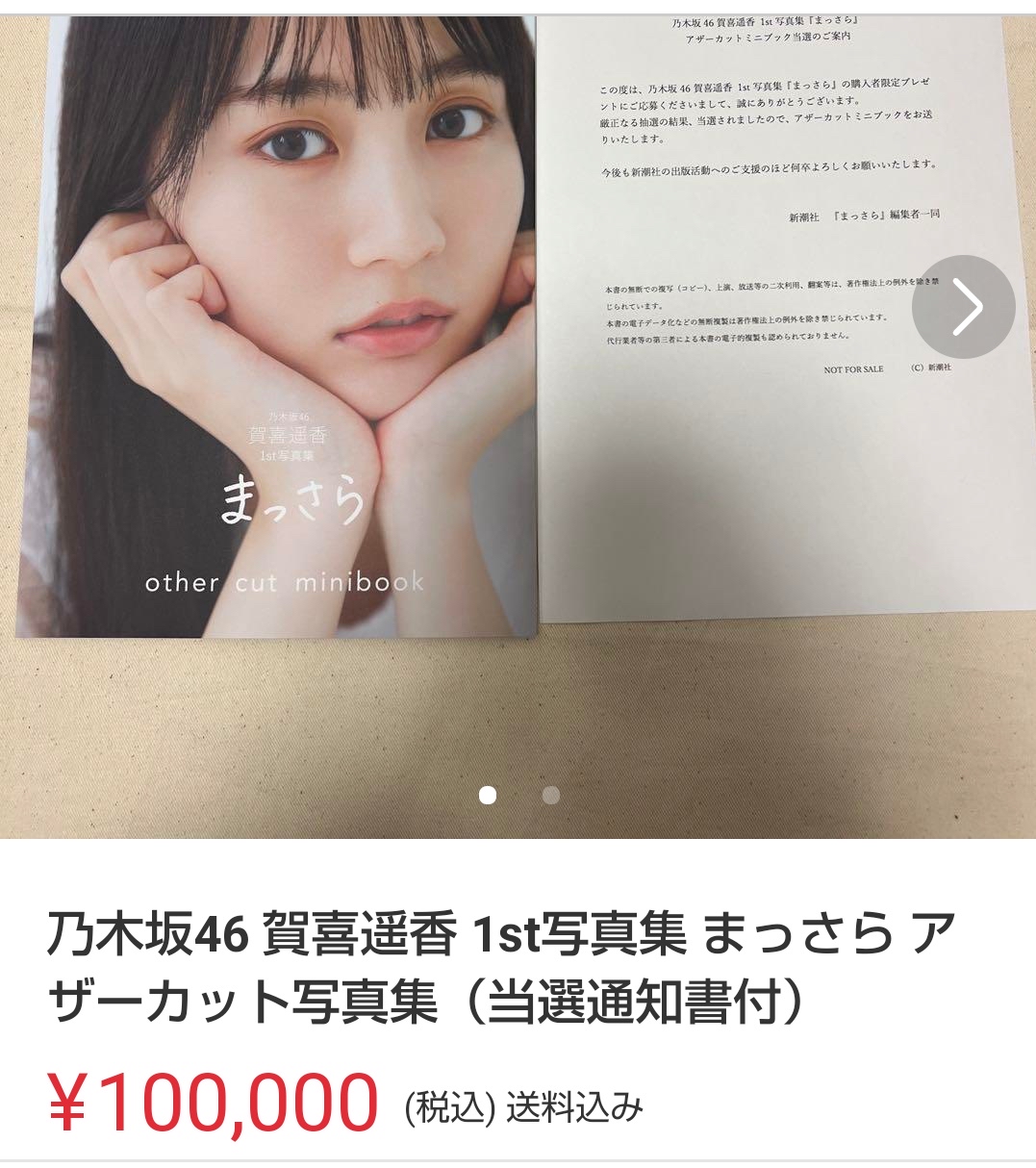 抽選券の目当てで大量購入された写真集は1000円切って大量転売中だな。全く何のために写真集買ってんだよ。もはや乃木坂の写真集はビックリマンチョコだなwww